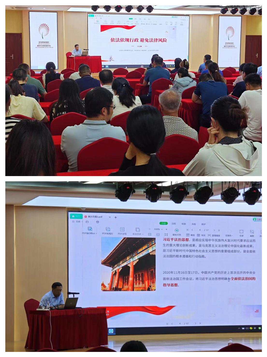 为进一步提升广大干部职工依法行政能力,增强法律意识和法治观念。2023年8月15日,青岛市西海岸新区文化和旅游局邀请我所闫文刚主任开展《依法依规行政避免法律风险》专题讲座。