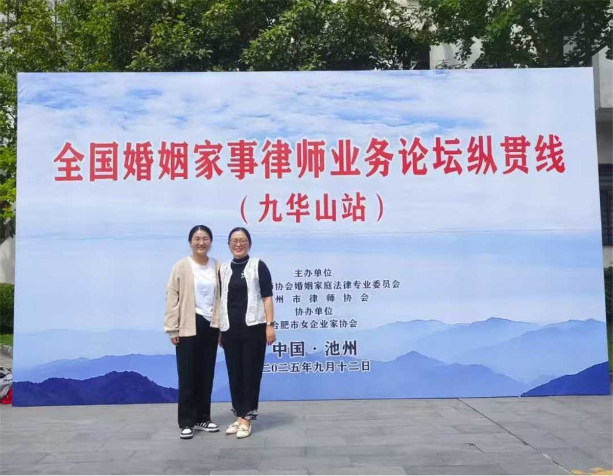 近日,安徽省律师协会主办的全国婚姻家事律师业务论坛纵贯线(九华山站)在池州青阳县成功举办,吸引了全国各地的近 500 名婚姻家事律师、学者等齐聚一堂共探行业前沿动态。我所薛燕律师作为婚姻家事专业律师,受邀参加了本次论坛。
